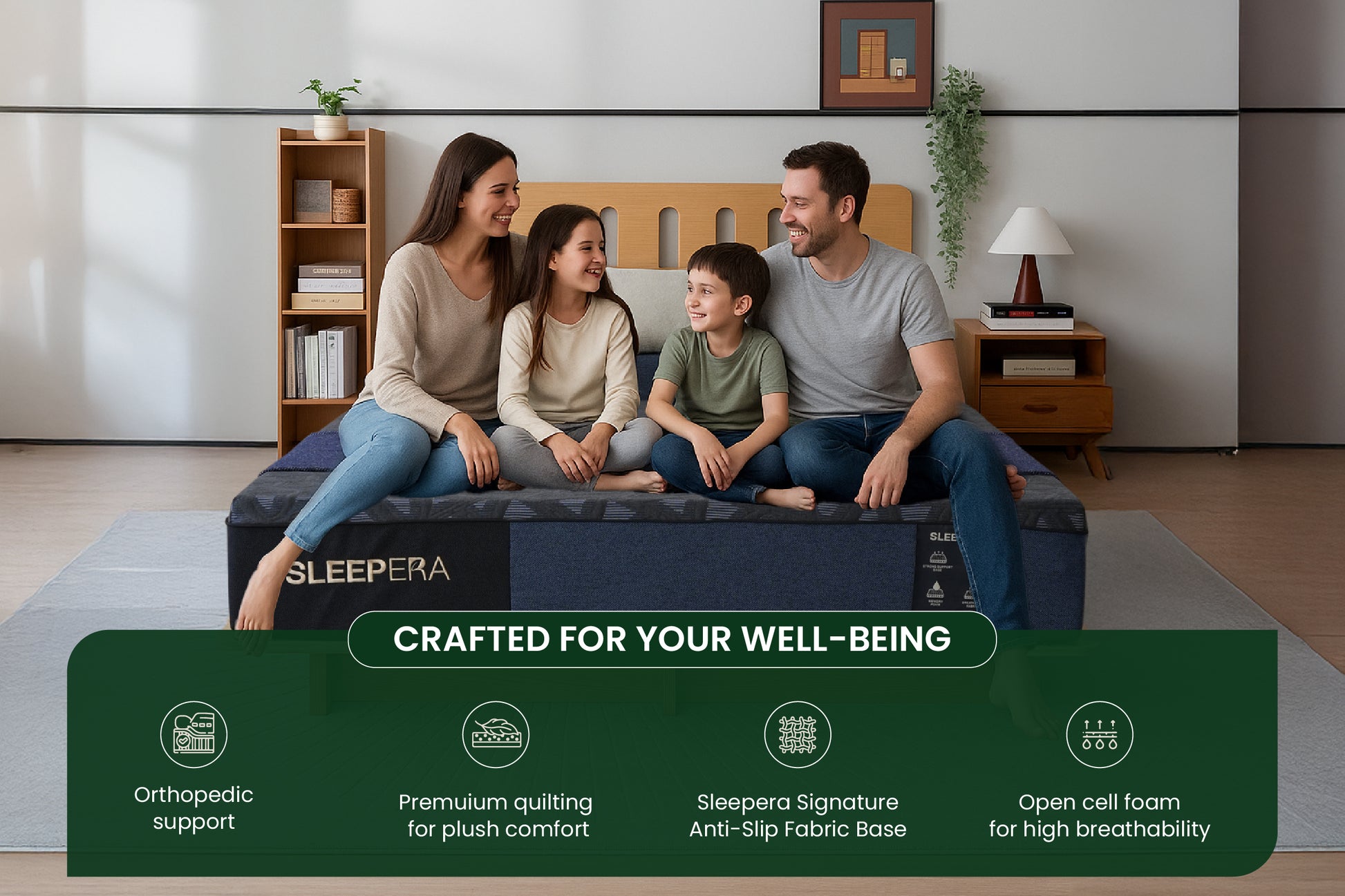 Get the Pure Foam Mattress by Sleepera — crafted for those who crave pressure-free comfort, orthopedic support, and long-lasting stability. Designed with a thoughtful layer-by-layer construction, this mattress combines softness where you want it and firmness where you need it, ensuring restful sleep every night.
