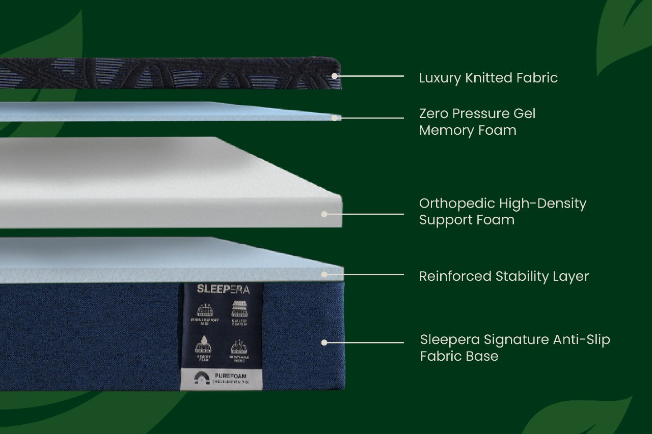 5. Sleepera Signature Anti-Slip Fabric Base (10%): Keeps the mattress securely in place, preventing unwanted shifting on your bed frame or foundation.